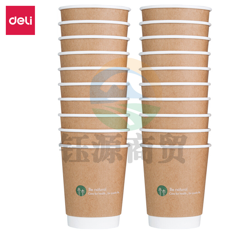 得力19204双层纸杯(棕)(20只/包)280ml240g五星纸+18gPE膜