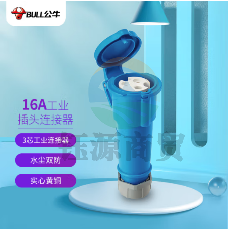 公牛(BULL)16A工业插头连接器 航空插头插座耦合器 大功率 3芯防水工业连接器 (母头) GNS-1630(Z)蓝色