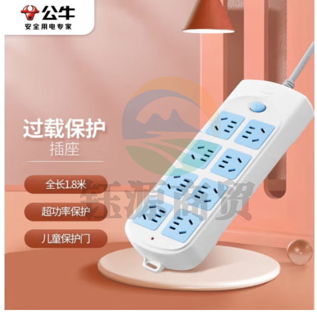 公牛 GN-604 1.8米线长 8位总控开关排插移动插排插座