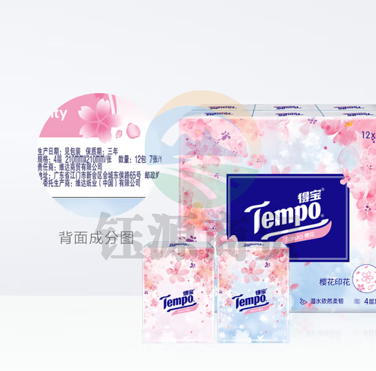 得宝(TEMPO)手帕纸 樱花味4层*7张*12包迷你樱花限定款纸巾小包 面巾纸
