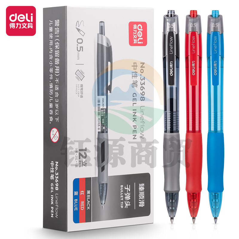 得力33698 臻顺滑办公中性笔0.5mm弹簧头(混)(12支/盒)