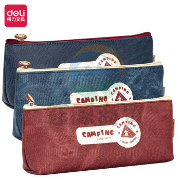 得力(deli)66976 粉享季双面方形笔袋 深蓝色一只装