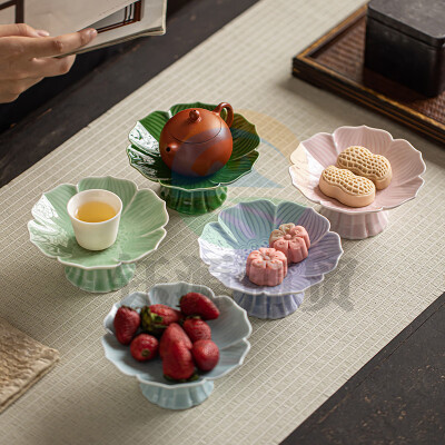 中式复古陶瓷高脚果盘 高脚款莲花小盘