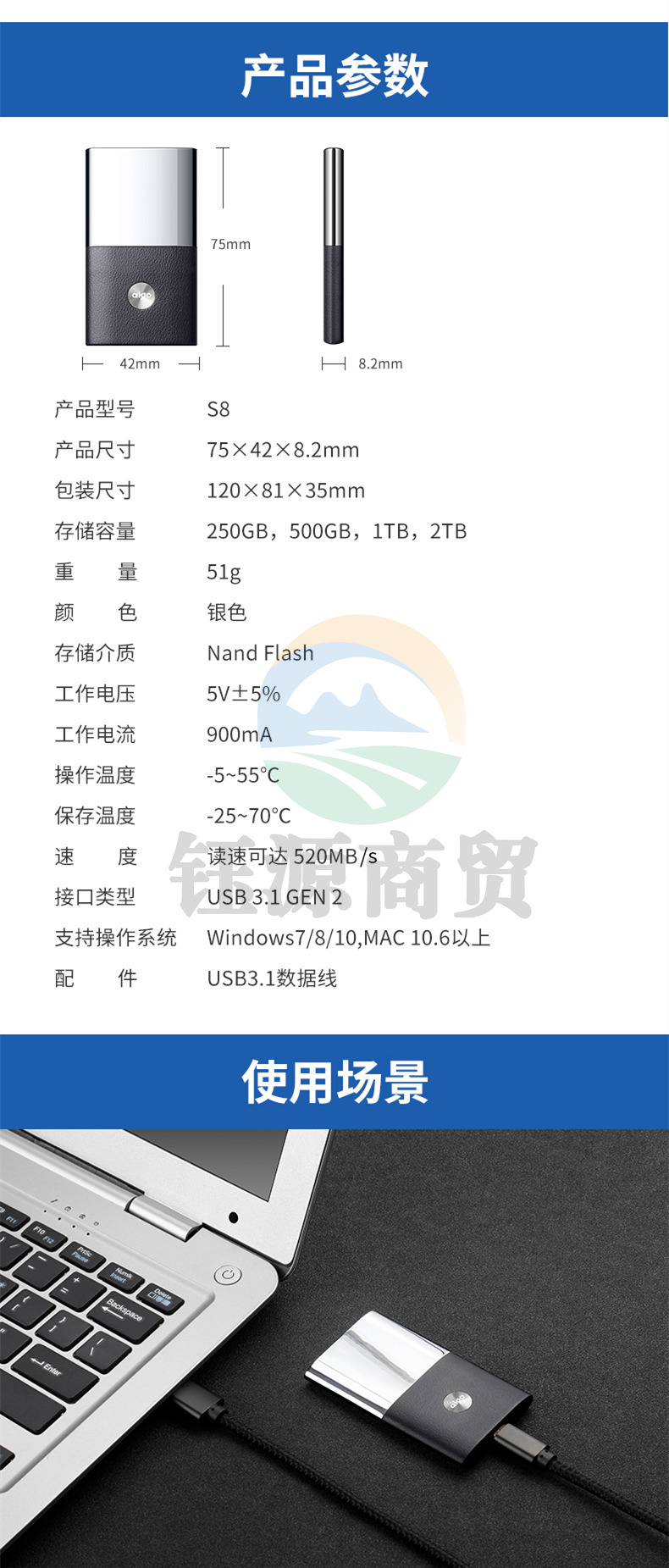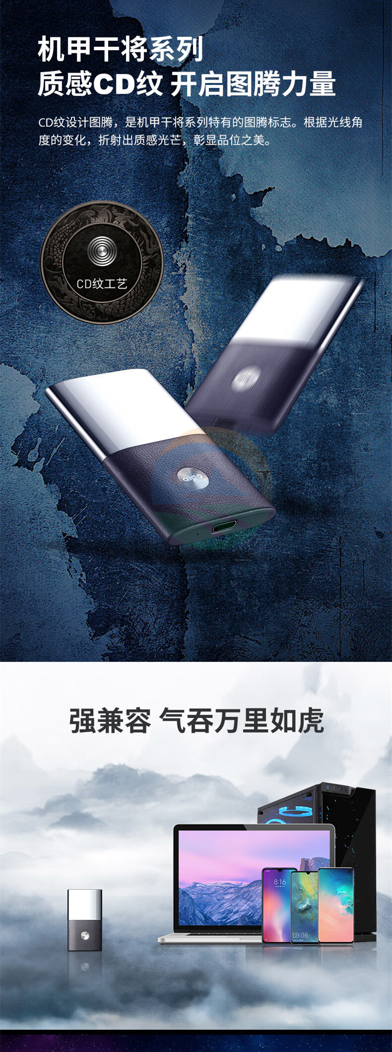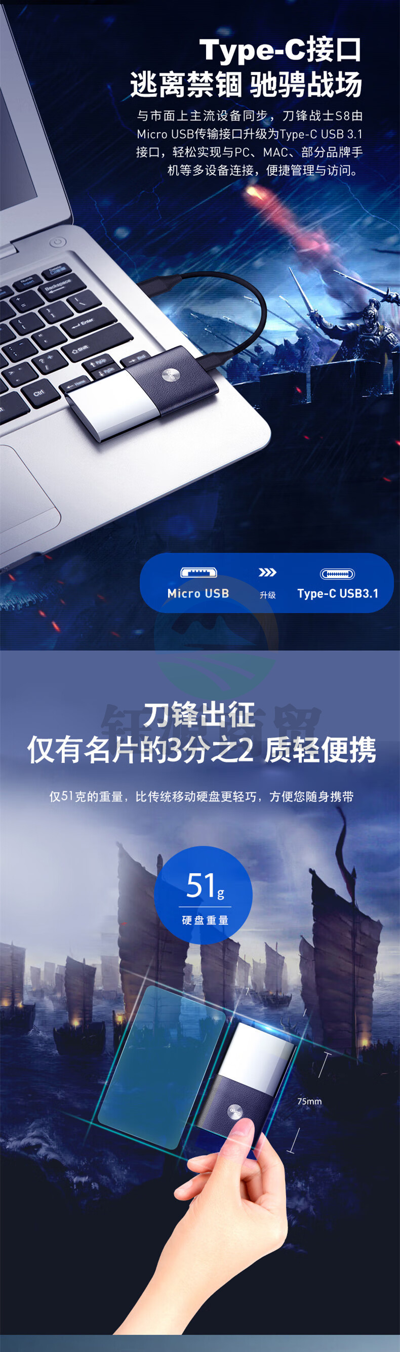 爱国者(aigo)1TB USB 3.1 移动硬盘 固态(PSSD) S8 刀锋战士 抗震防摔 读速高达520MB/s(一年包换)