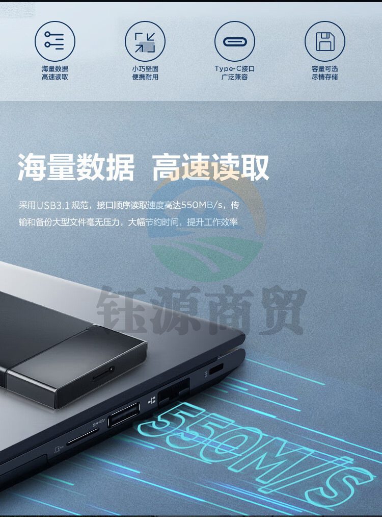 联想(lenovo)1TB移动固态硬盘 Type-C USB3.1 接口金属移动硬盘 抗震防摔高速PSSD 550MB/s WLSZ09031249599522