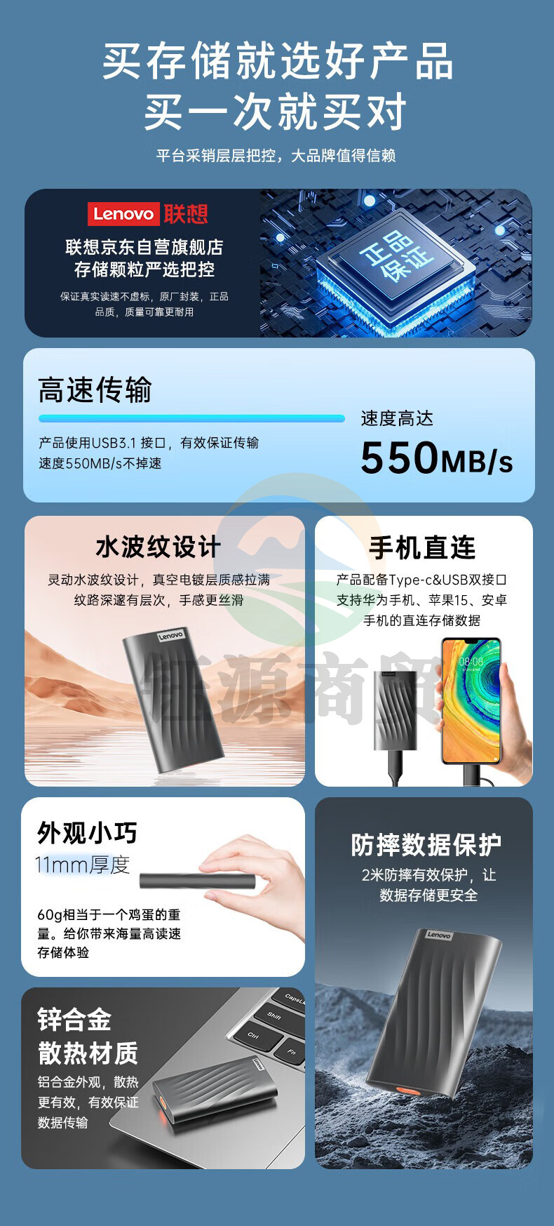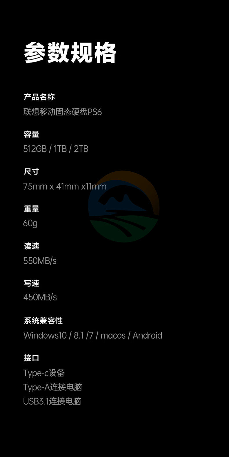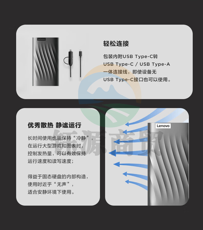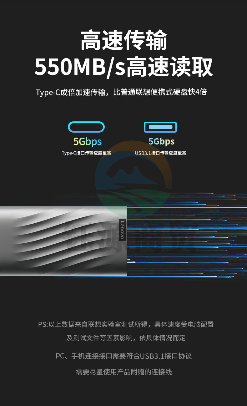 联想(Lenovo)1TB移动固态硬盘(PSSD)Type-cUSB3.1550MB/s高速SSD双接口PS6手机直连笔记本