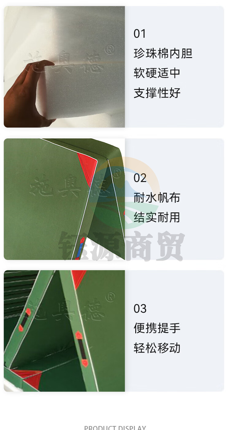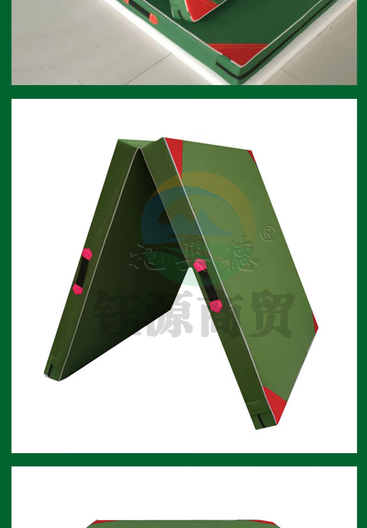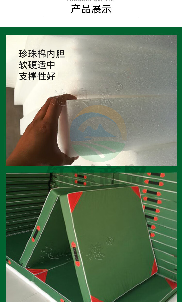 施奥德 体操垫仰卧起坐垫叠军绿色保护垫 2*1*0.05m 珍珠棉有机硅防水帆布 二折体操垫200*100*5cm