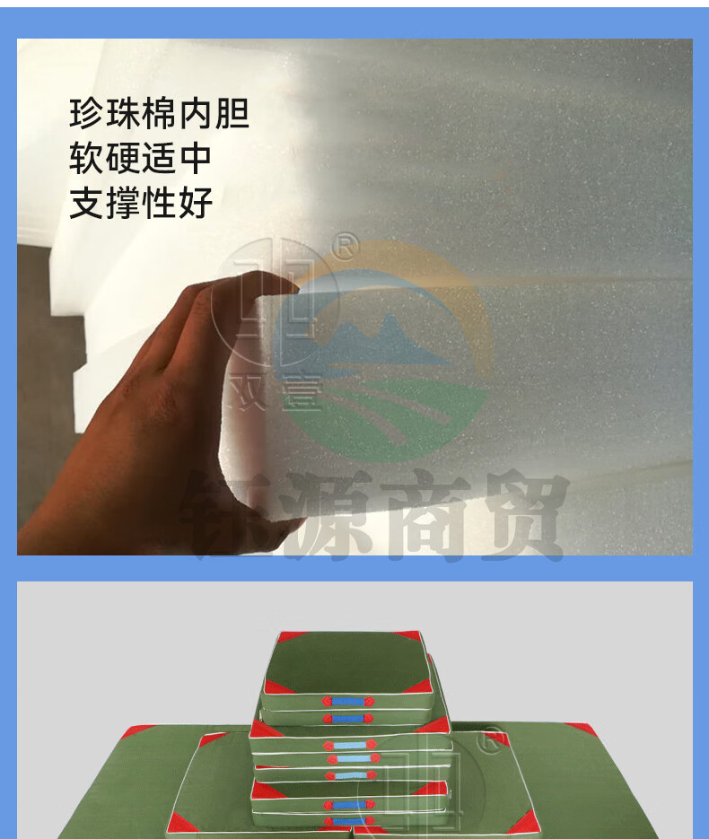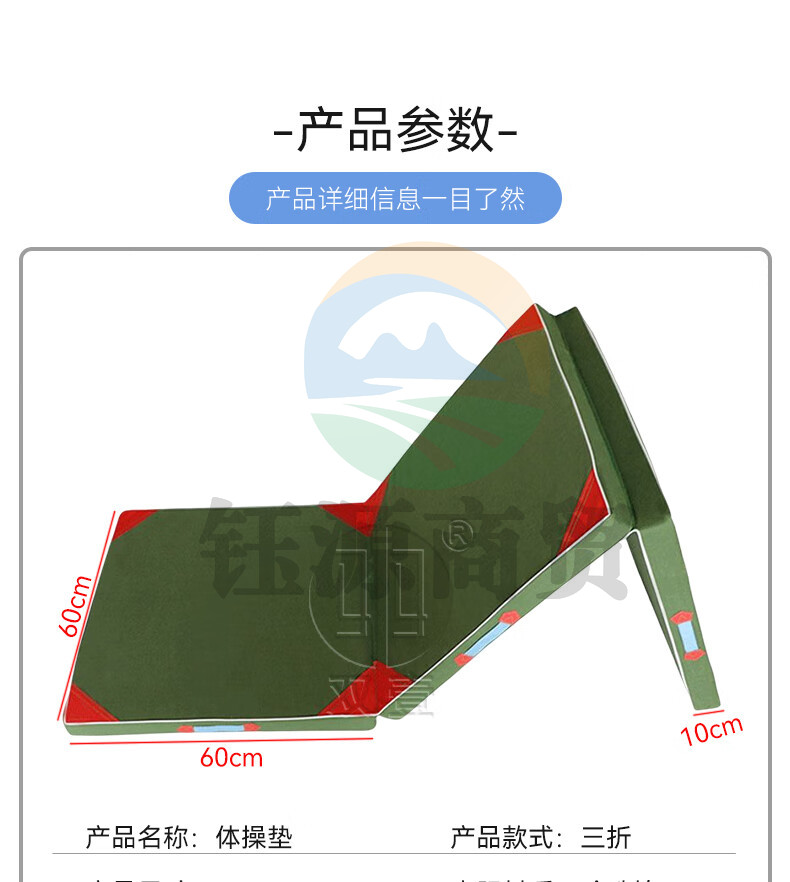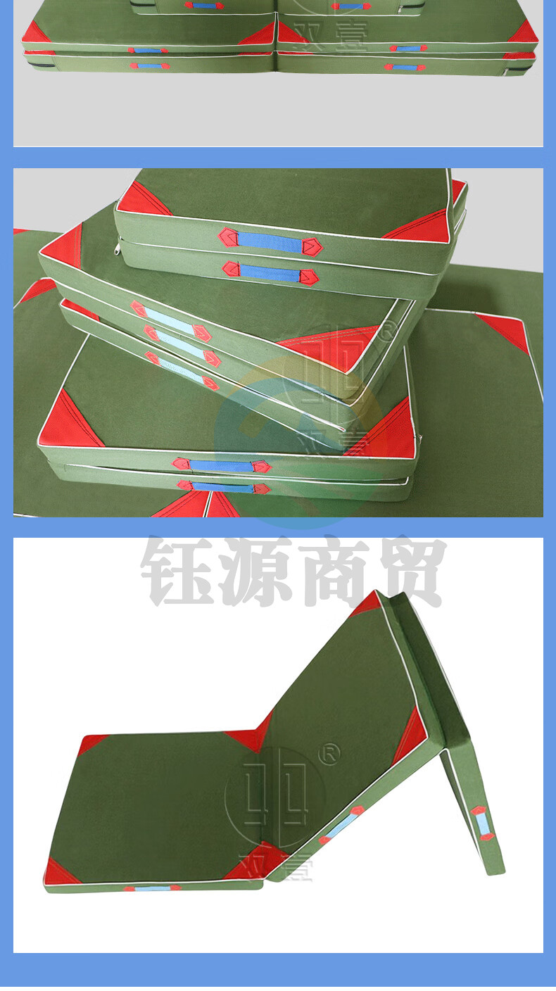 双壹 体操垫仰卧起坐垫叠军绿色保护垫 1.8*0.6*0.1m 珍珠棉有机硅防水帆布 三折体操垫180*60*10cm