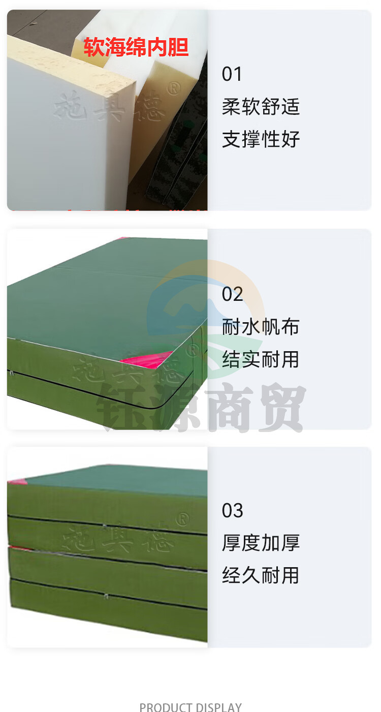 施奥德 体操垫仰卧起坐垫叠军绿色保护垫 2*1*0.2m高密度海绵 有机硅防水帆布 海绵密度35 二折200*100*20cm