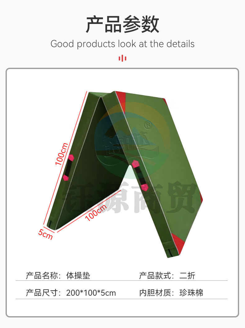 途锐达 体操垫 军绿色 珍珠棉有机硅防水帆布 二折体操垫200*100*5cm