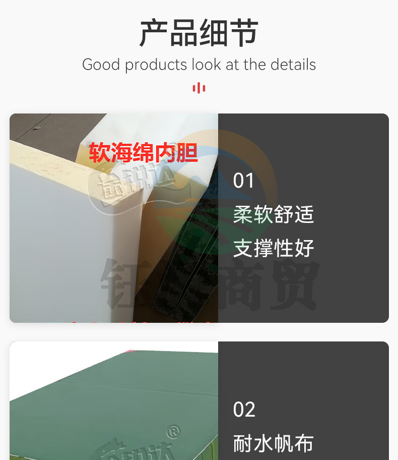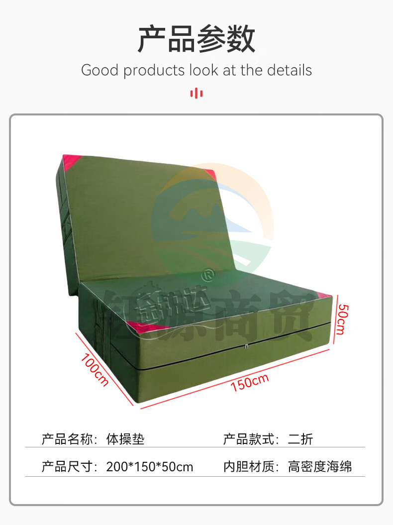 途锐达 体操垫 军绿色高密度海绵密度35有机硅防水帆布二折200*150*50cm