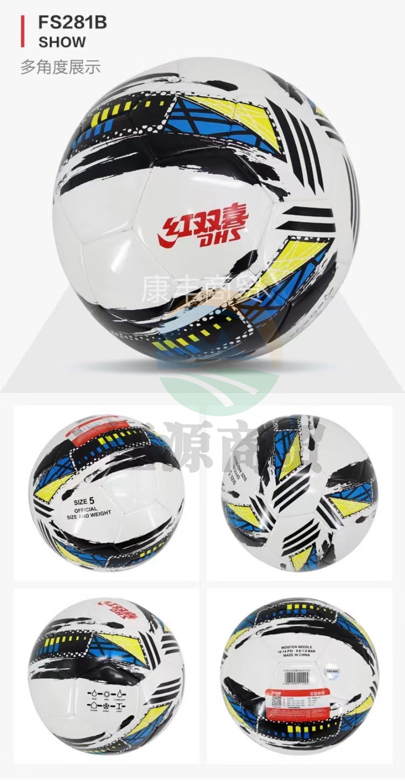 红双喜DHS中小学生训练足球5号热粘合PU成人室内外专业比赛 FS281B足球