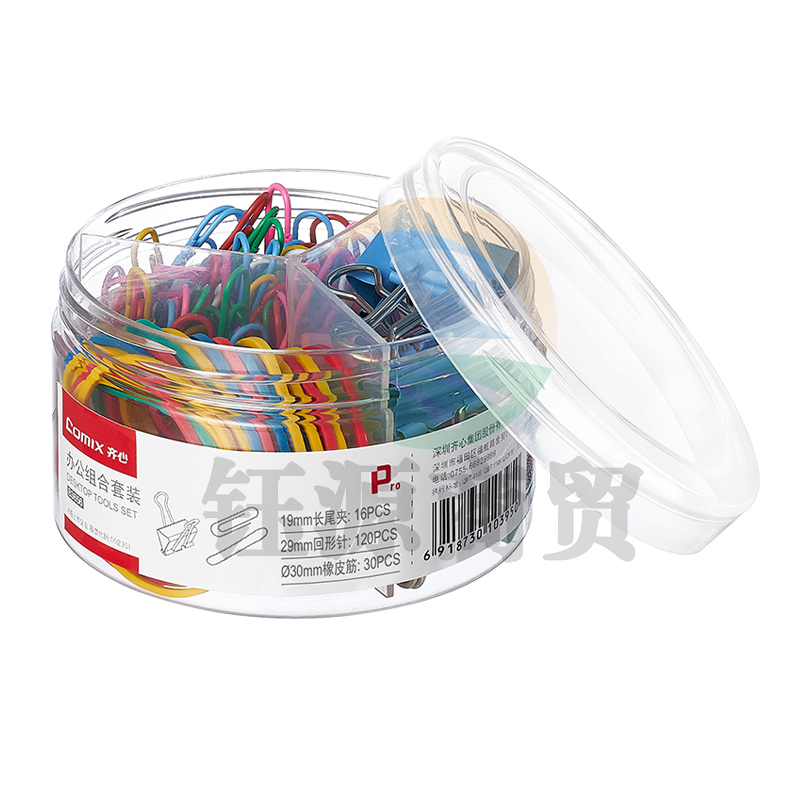 齐心 B3656 办公组合套装 5号票夹/29mm回形针/橡皮筋 WLSZ01312225446616