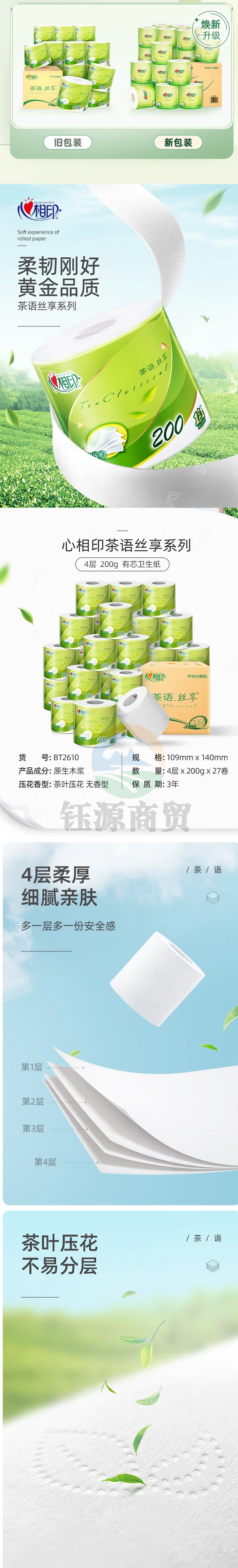 心相印卷纸 茶语 4层200g*27卷卫生纸巾(5箱起送)