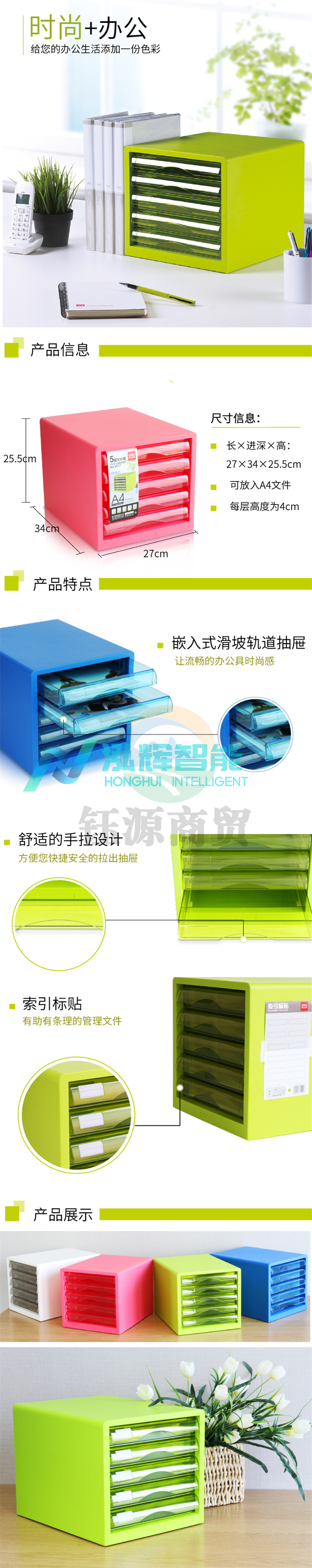 得力 9777 五层桌面文件柜 275x340x260mm (单位:只) 白 WLSZ011421061777