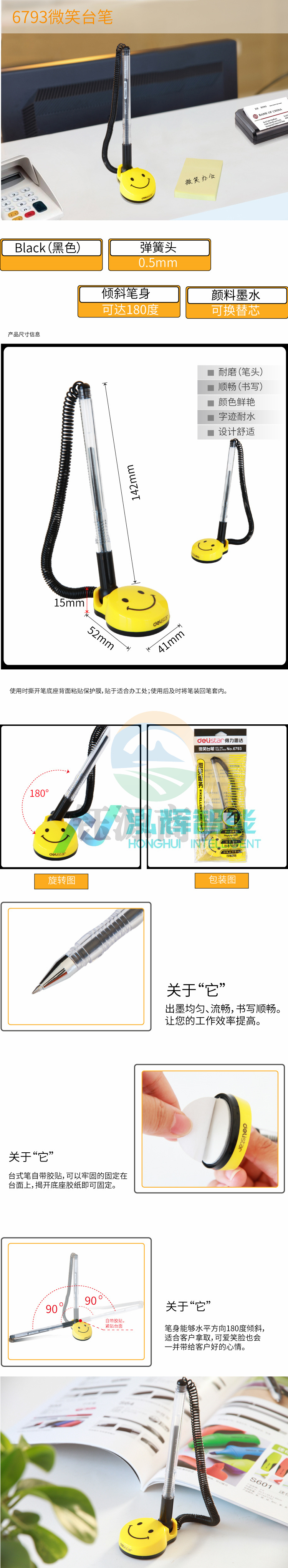 得力 6793 中性台笔0.5mm 24支/盒 (单位:支) 黑 WLSZ01142157531112
