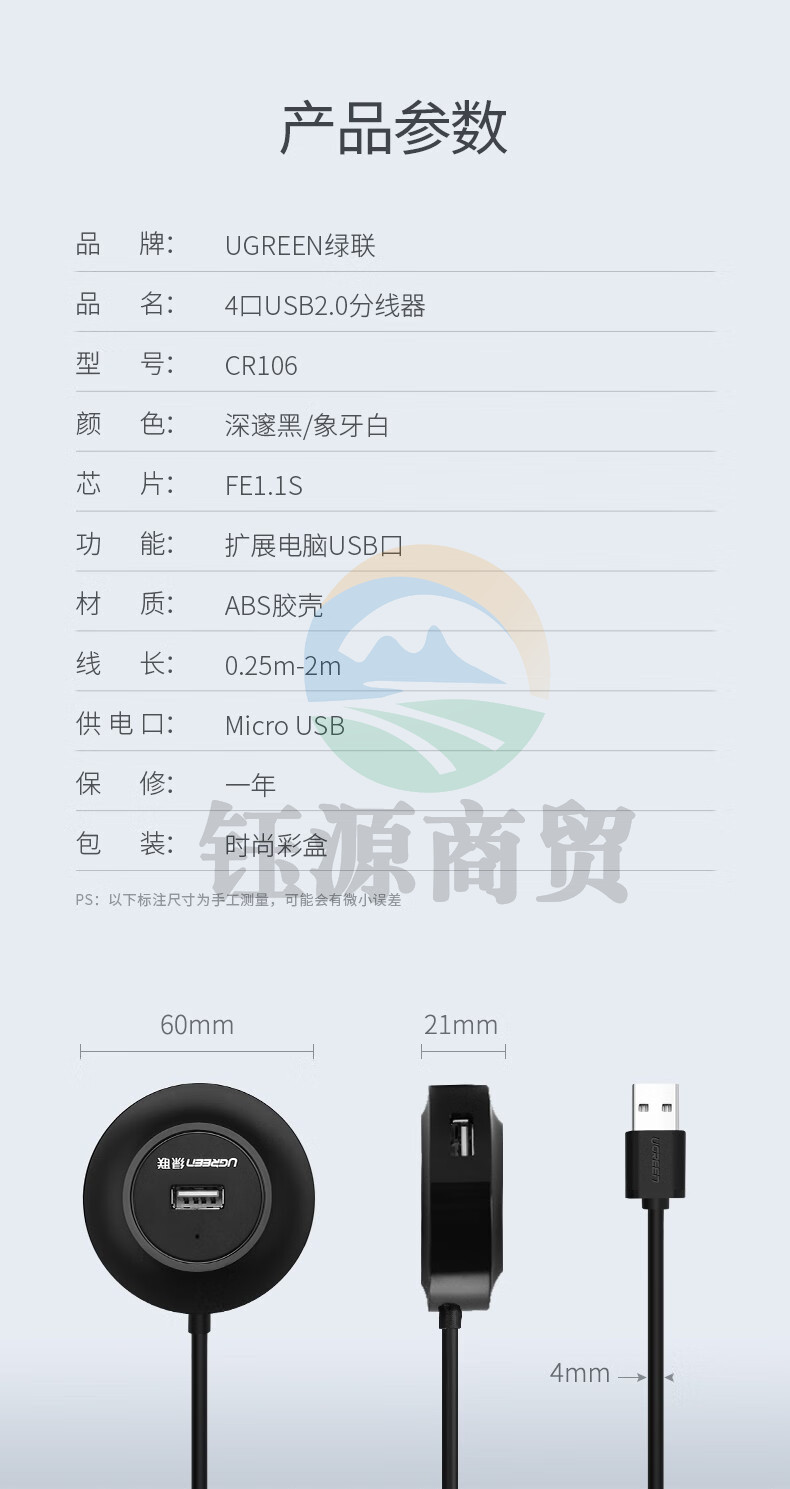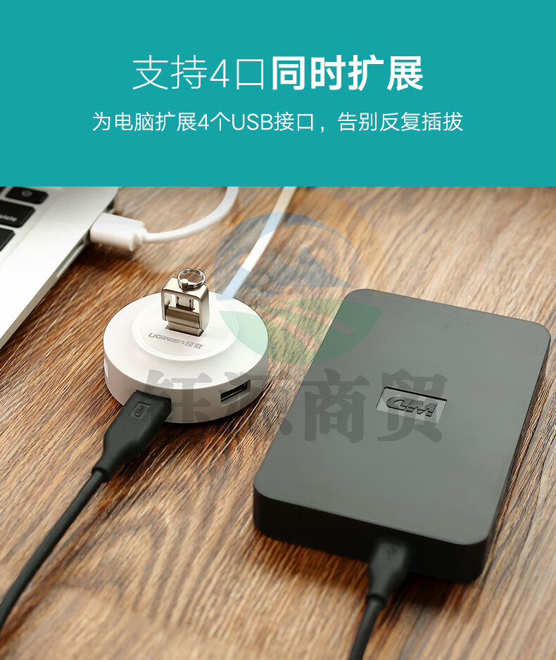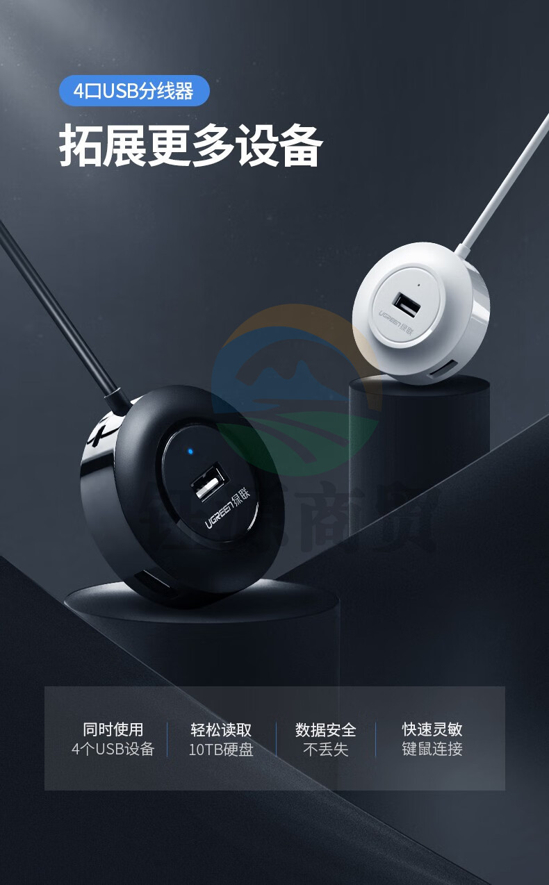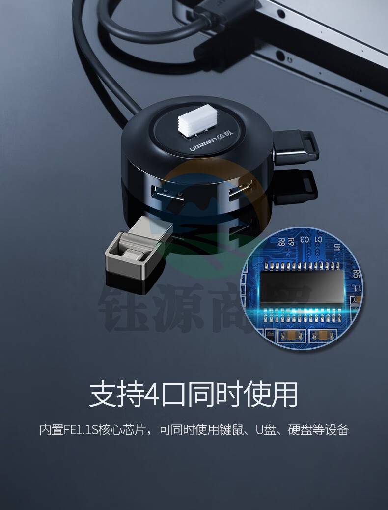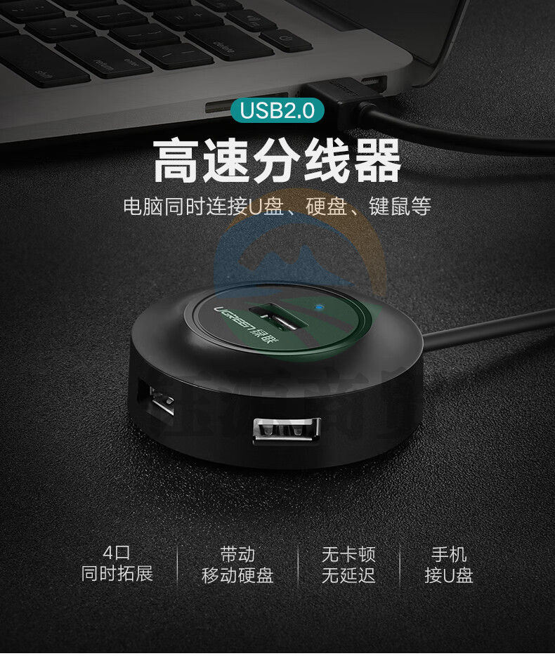 绿联 USB分线器2.0 4口HUB集线器扩展坞 一拖四转换器多接口延长线带供电口 CR106 WLSZ01021450051505