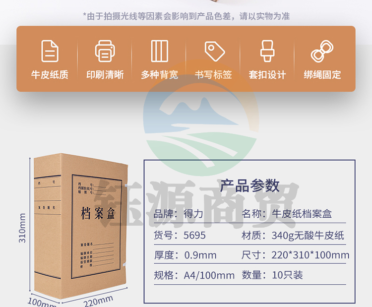 得力5695牛皮纸档案盒(棕黄)(10个/包) WLSZ01052239245790