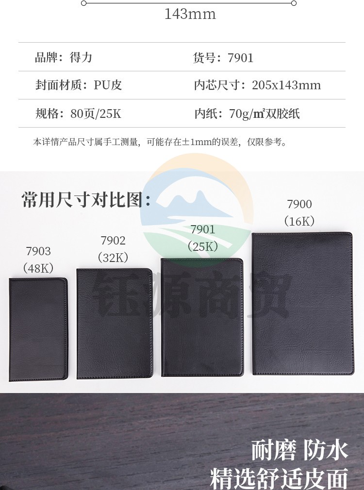 得力7901皮面笔记本(黑)-80页-25K(本) WLSZ01071332255918