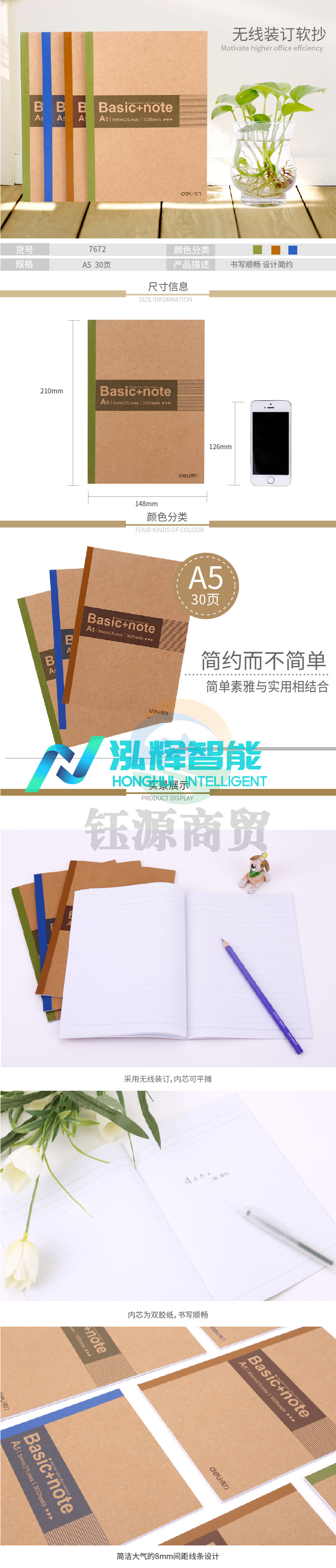 得力 7672 无线本笔记本作业本胶装本 A5/30页 WLSZ01142033576865