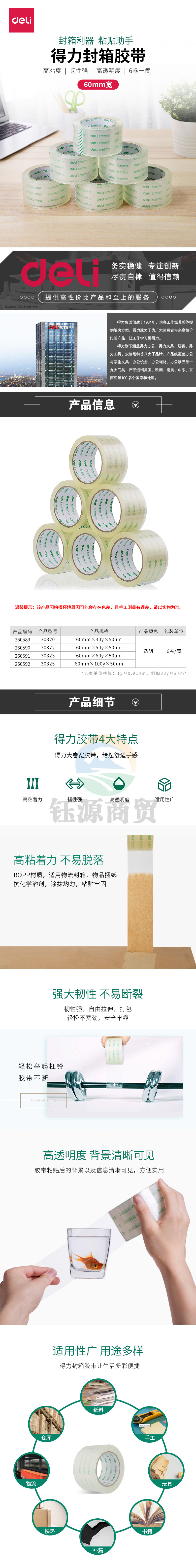 得力(deli) 透明封箱胶带 快递物流打包胶布 宽60mm长45.7m 6卷装30322 WLSZ01312245192080