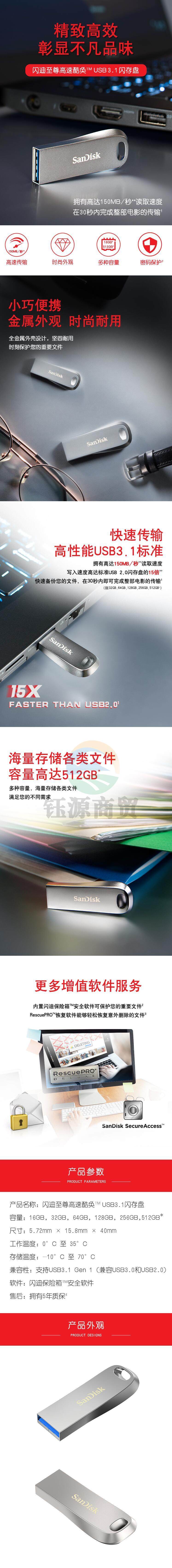 闪迪 512GB USB3.1 U盘SDCZ74酷奂银色 WLSZ01021255156747