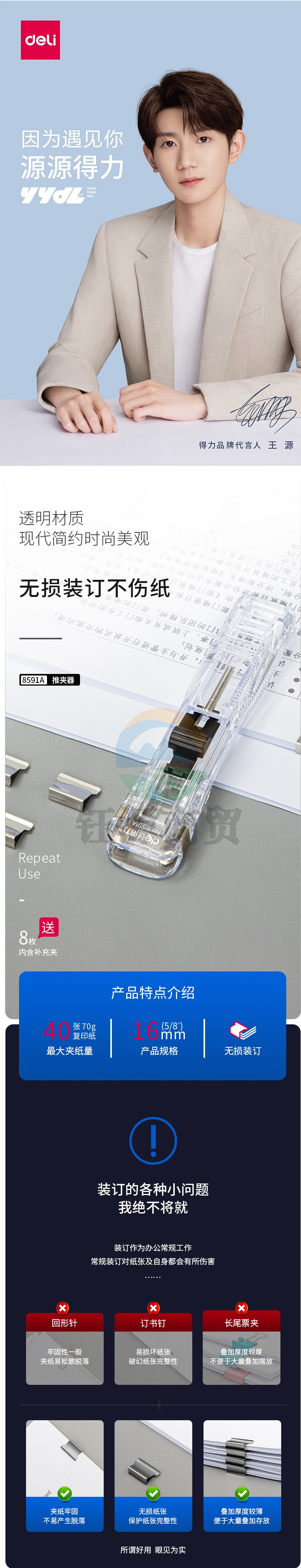 得力(deli) 8591 金属推夹器大号 夹纸器 装订器补充夹 订书文件夹子 装订机备用夹 白色推夹器