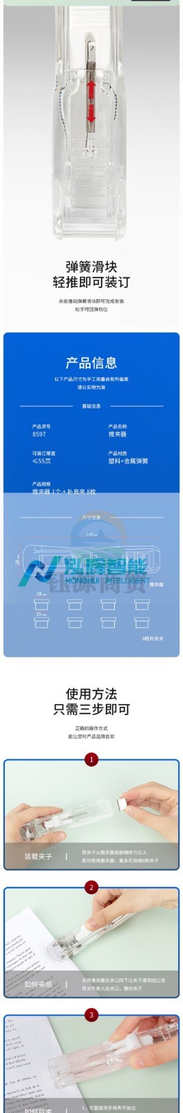 得力 8597 推夹器(透明蓝)(1推夹器+8补充夹)(盒) WLSZ01142045146815