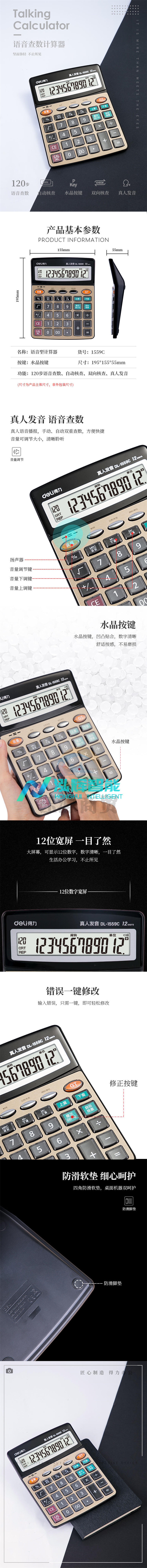 得力1559C 12位数语音计算器(金色)(台) WLSZ01142110353285
