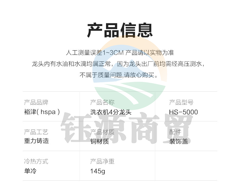 裕津HS-5000洗衣机水龙头全铜主体四4分螺纹专用自来水水嘴家用单冷 WLSZ06281224021210