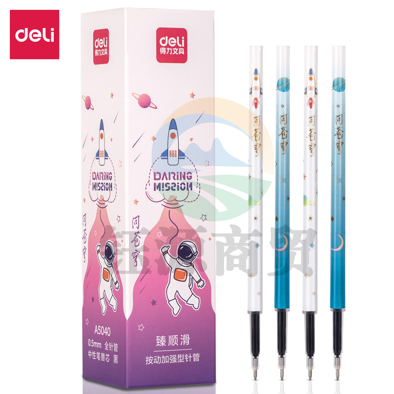 得力A5040中国航天按动加强型针管中性笔替芯0.5mm全针管(黑)(支)