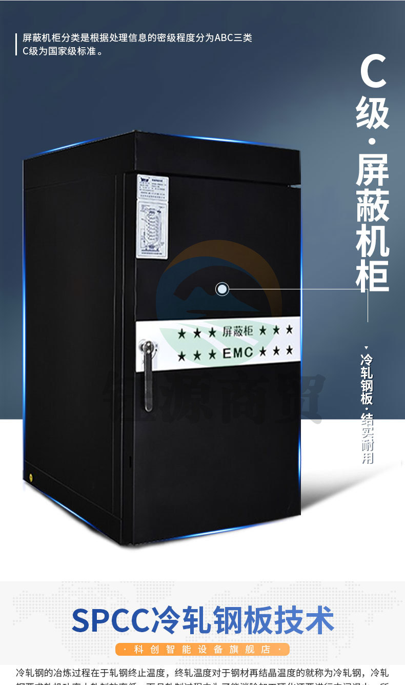 科创 屏蔽机柜37U C级电磁屏蔽机柜 网络屏蔽柜 服务器屏蔽机柜 保密机柜涉密机柜700*1000*2000 KCP-G7037E WLSZ06040847076310