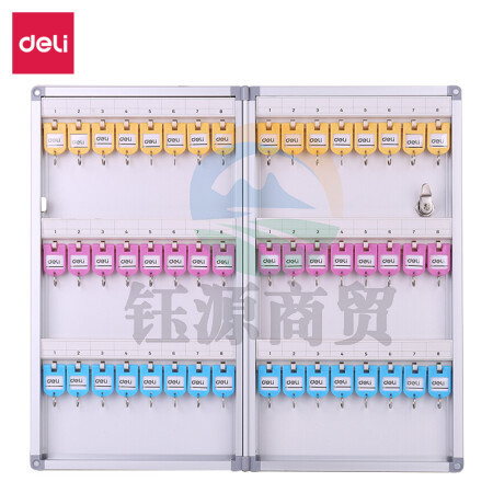 得力(deli)50801 48位铝合金钥匙管理箱 带锁壁挂含钥匙牌 银色
