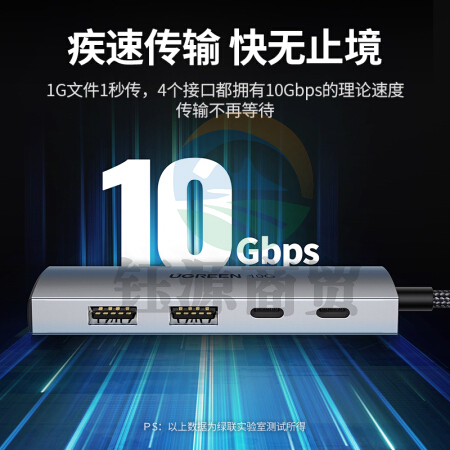 绿联 CM480 Type-C3.1分线器 USB-C3.1 Gen2高速4口 电脑一拖四转换器延长线 0.25米 30758