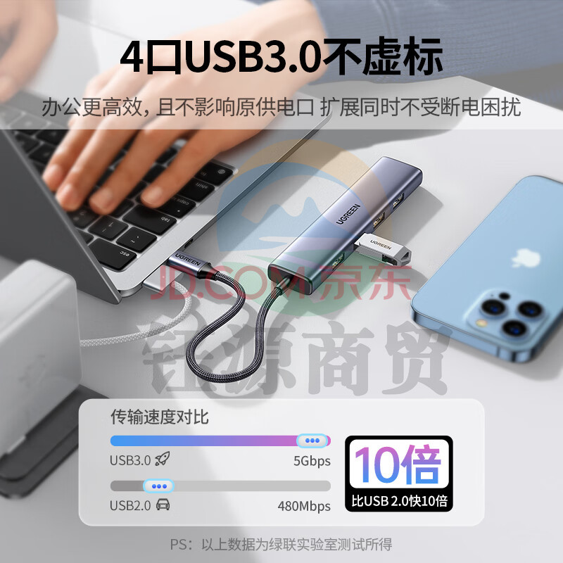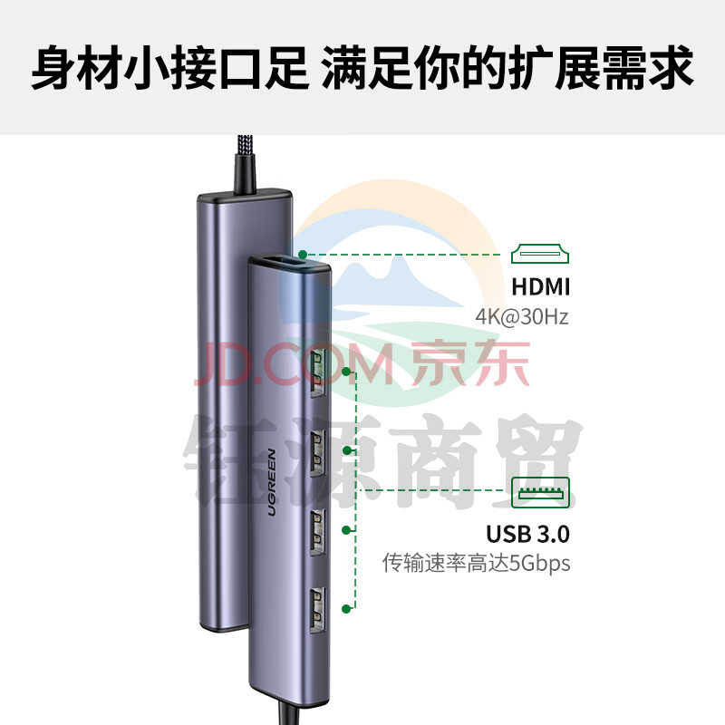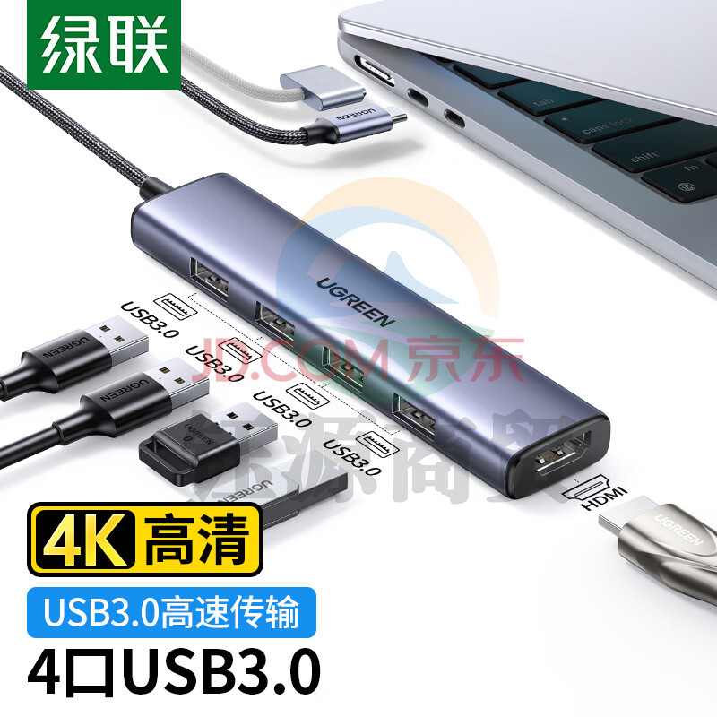 绿联 Type-C扩展坞 HDMI转接头拓展坞USB-C3.0分线转换器适用苹果macbookPro华为联想笔记本电脑iPadair平板 90370