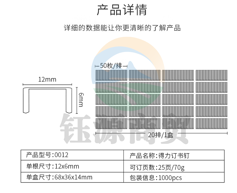 得力 0012 订书钉12#(1000枚/盒)5盒起订 WLSZ01071422418855
