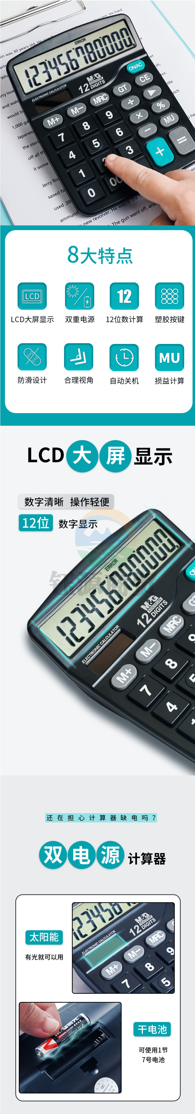 晨光文具 ADG98189 双电源计算器 WLSZ01312227586820