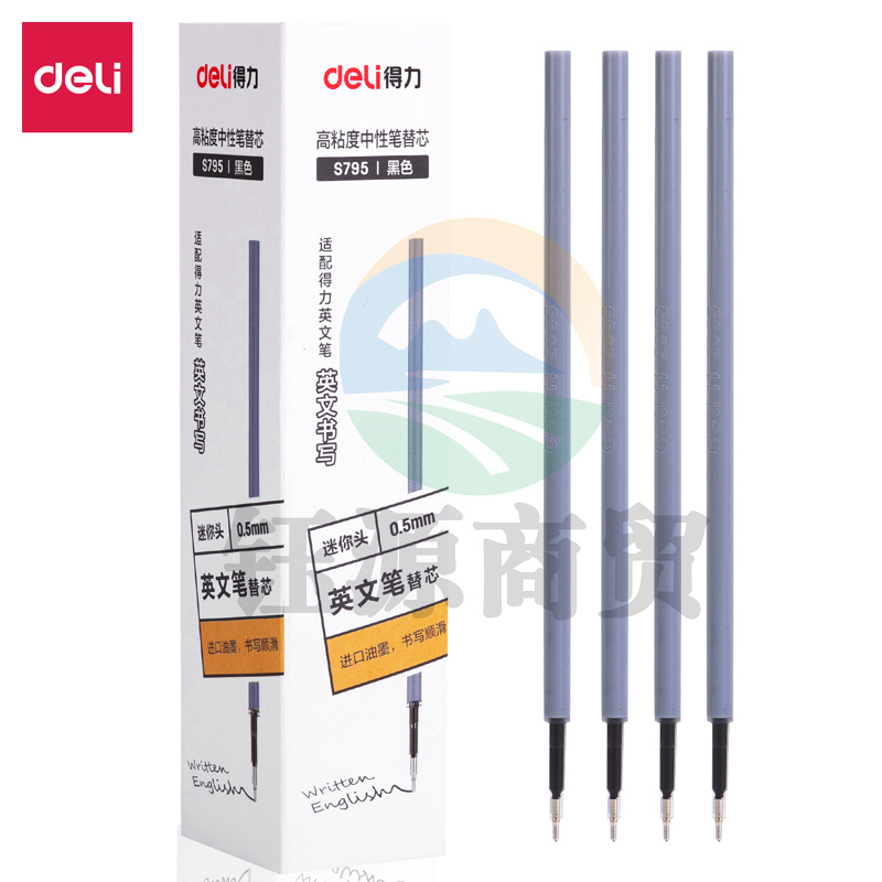 得力S795高粘度中性笔替芯彩盒装0.5mm迷你头(黑)(支)
