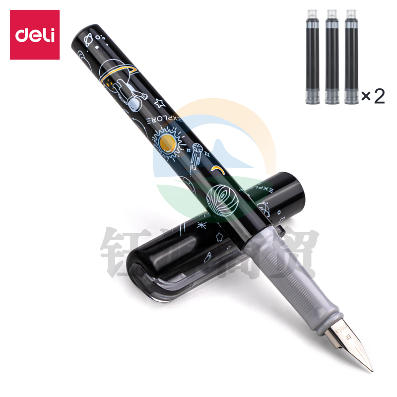得力A933_中国航天练字钢笔(黑色)(1支笔+6墨囊/卡)