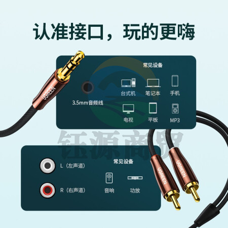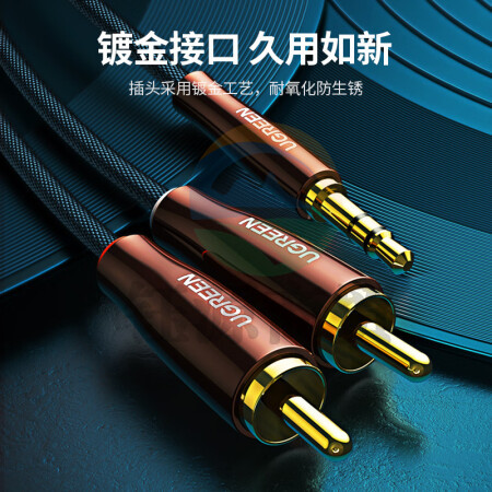 绿联 3.5mm转双莲花头2米音频线一分二 3.5转2RCA公对公连接线 电脑手机音箱功放低音炮转换线