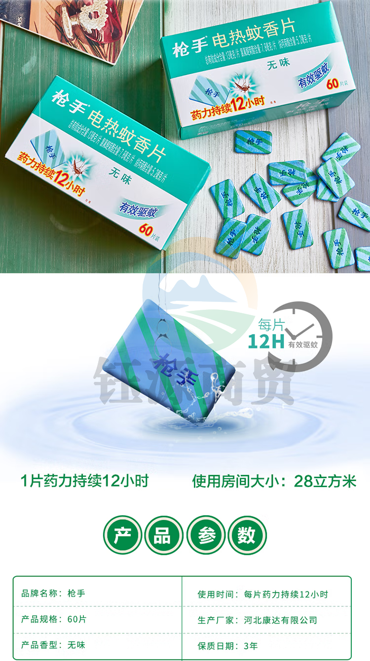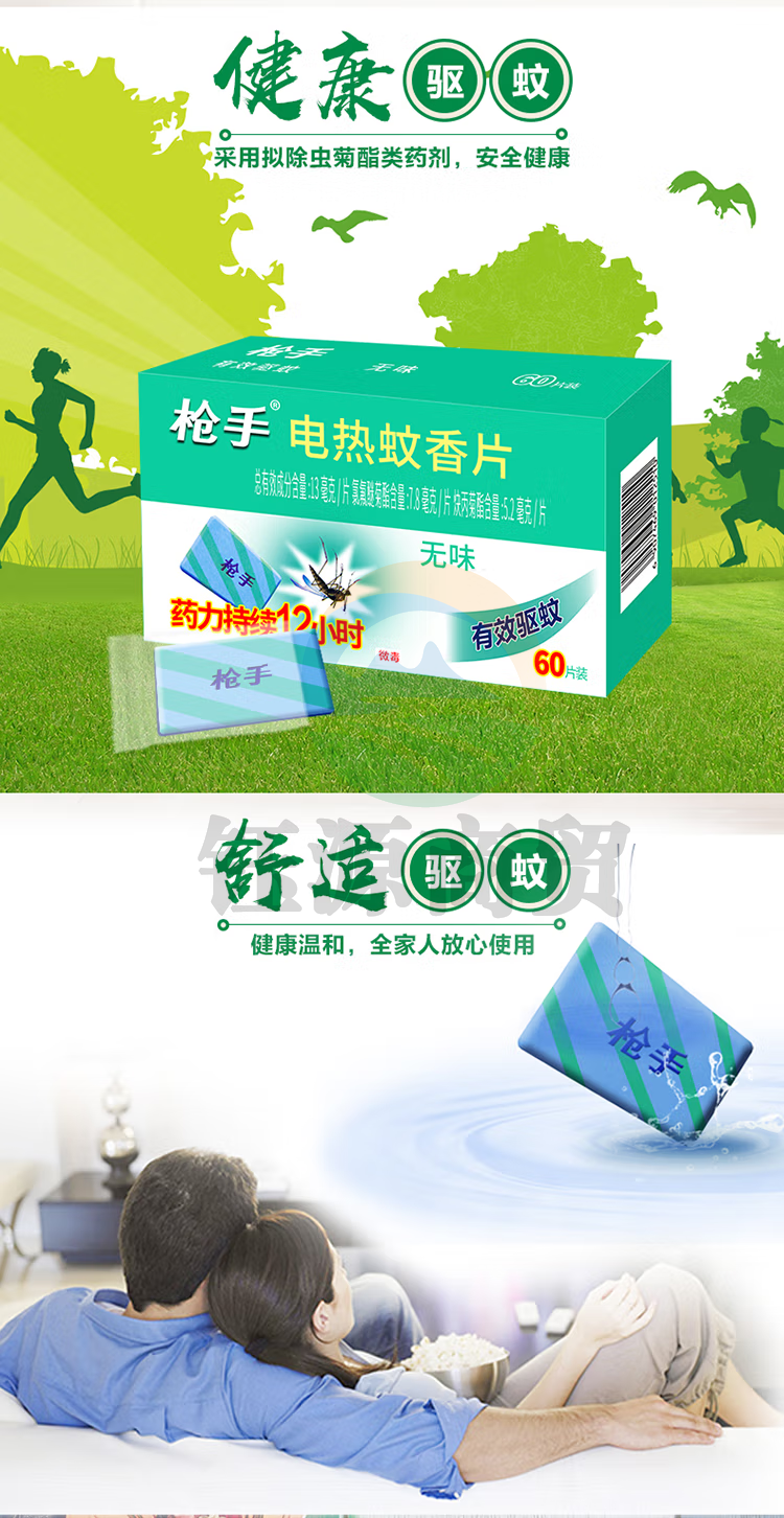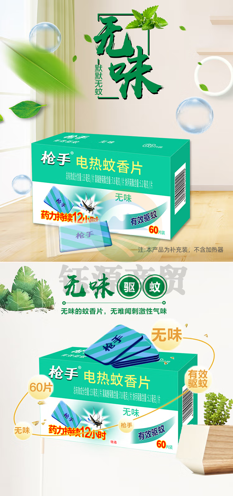 枪手电热蚊香片 无味驱蚊片无香驱蚊杀蚊家用电加热蚊香片套装 60片