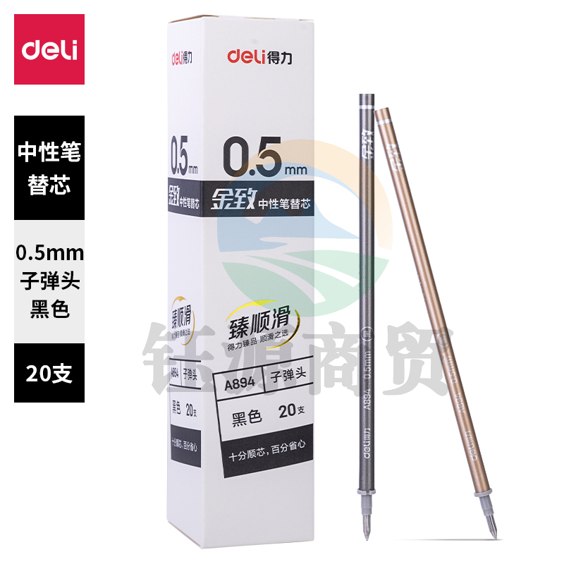 得力A894臻顺滑学生中性笔替芯0.5mm子弹头(黑)(支)
