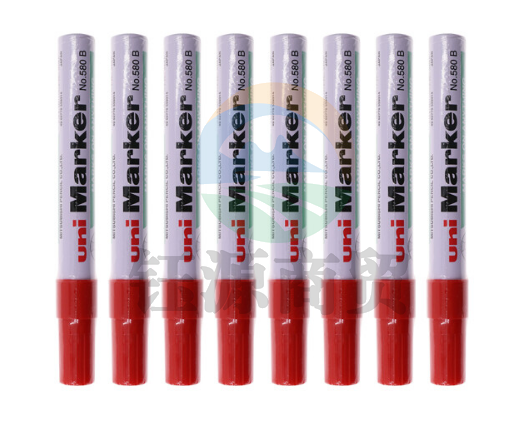 三菱(Uni)单头油性记号笔马克笔 斜头方嘴大头笔 580B 红色12支装 WLSZ05241253218097
