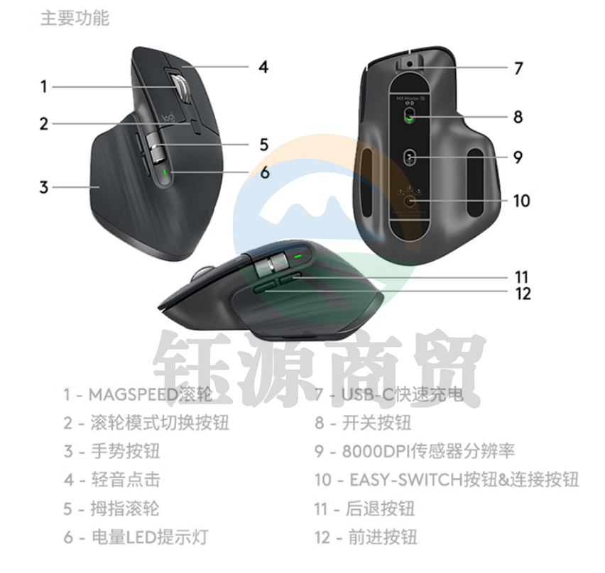 罗技(Logitech)MX Master 3S 鼠标 无线蓝牙鼠标 办公鼠标 右手鼠标 石墨黑 带Logi Bolt无线接收器