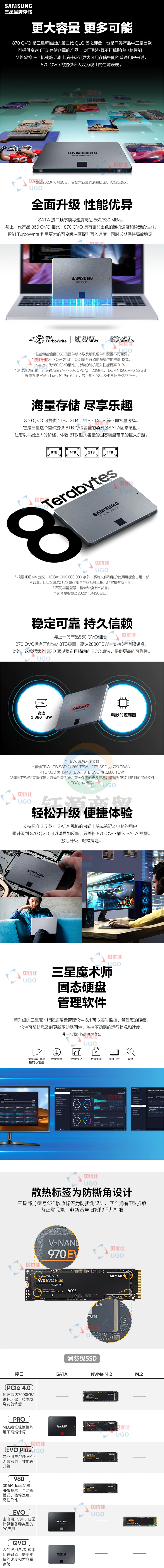 三星(SAMSUNG)1TB SSD固态硬盘 SATA3.0接口 870 QVO MZ-77Q1T0B