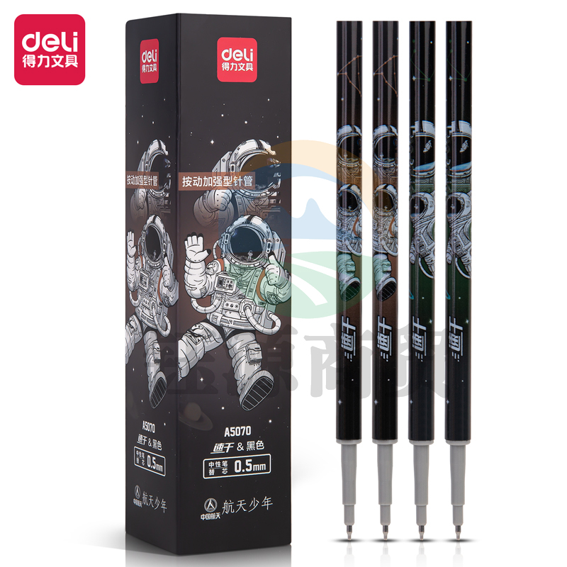 得力A5070宇航员顺滑速干按动0.5mm加强型针管(黑)(支)