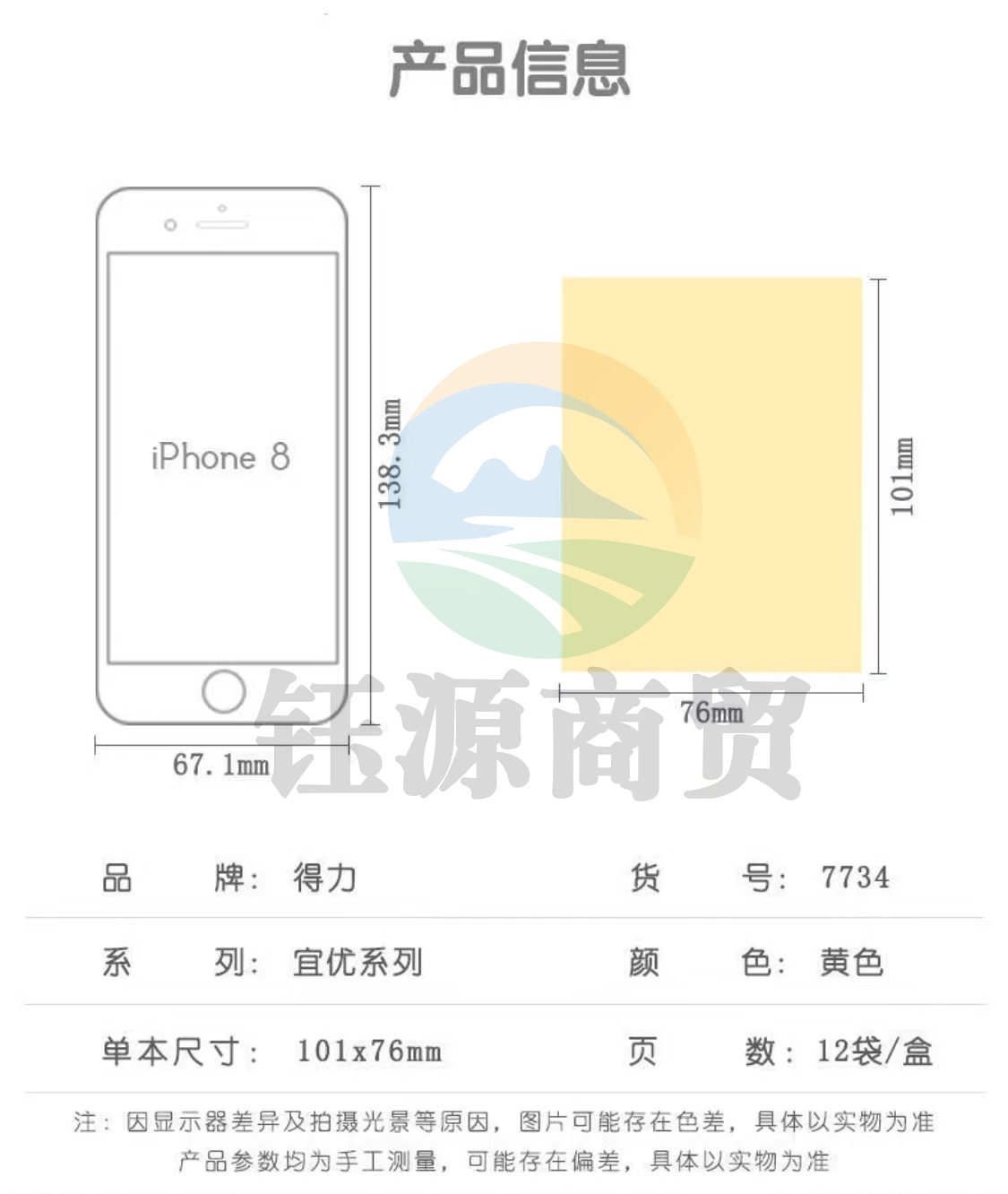 得力 7734 记事贴(淡黄)76*101mm(包) WLSZ01142249272506