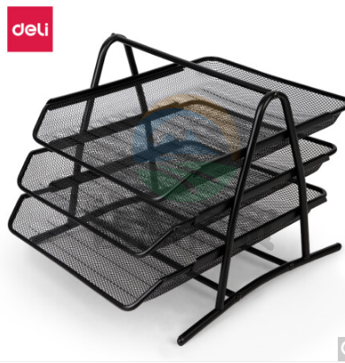 得力(deli)商务三层金属文件盘 桌面收纳文件架/资料架/文件篮 托盘可前后移动 黑色 9181 WLSZ01142021367731