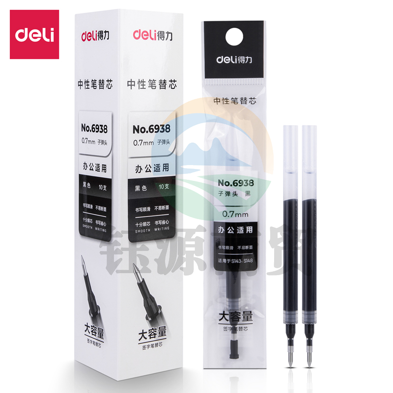得力/deli 6938 大容量办公中性笔替芯0.7mm子弹头 黑色 10支/盒