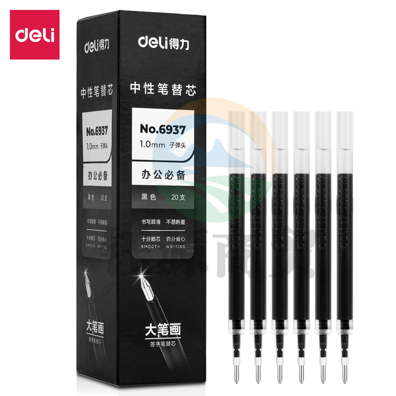 得力6937大笔画办公中性笔替芯1.0mm子弹头(黑)(支)